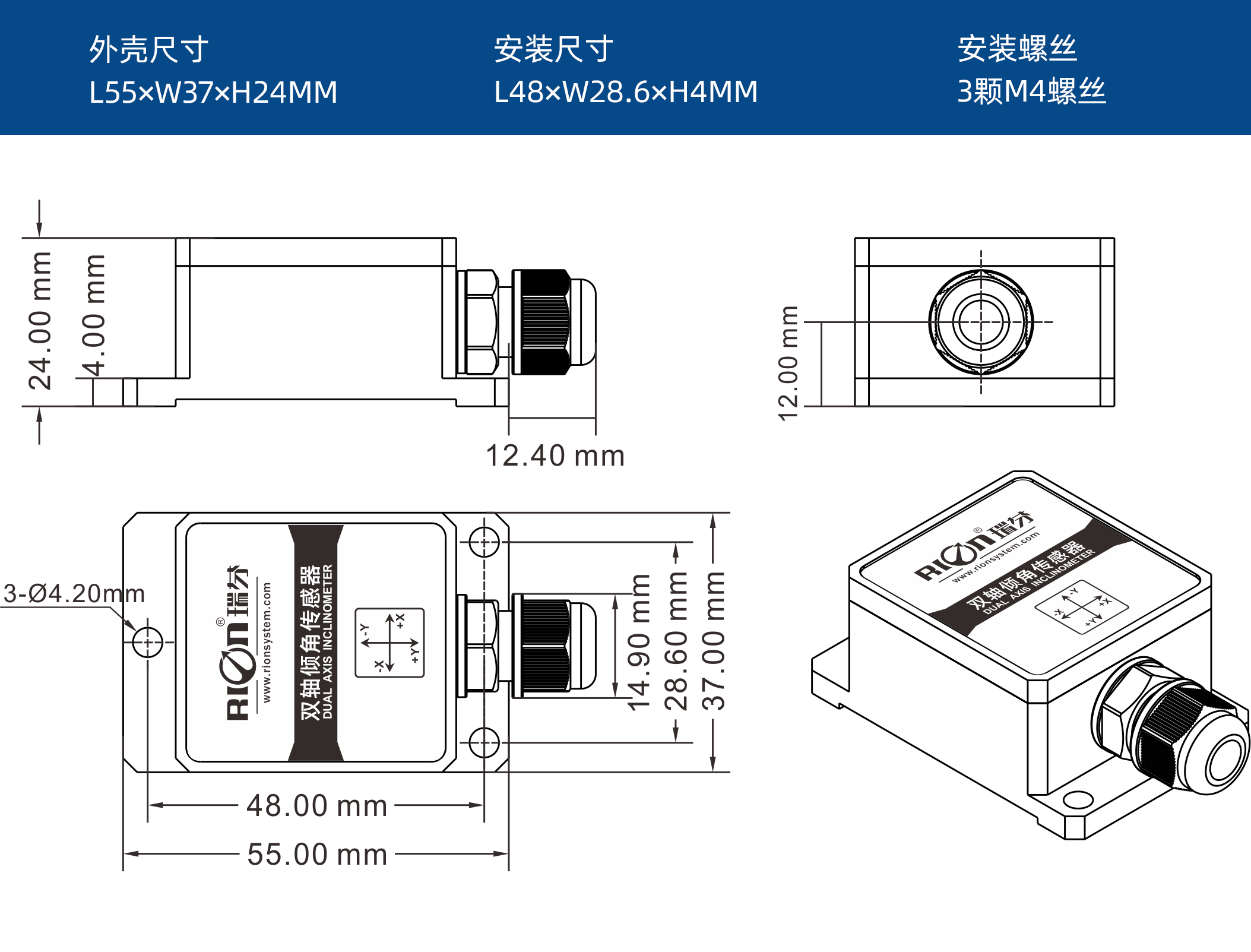 ★ IP67防护等级 ★ 高抗振性能>3500g ★ 小体积55×37×24mm(可定制) -